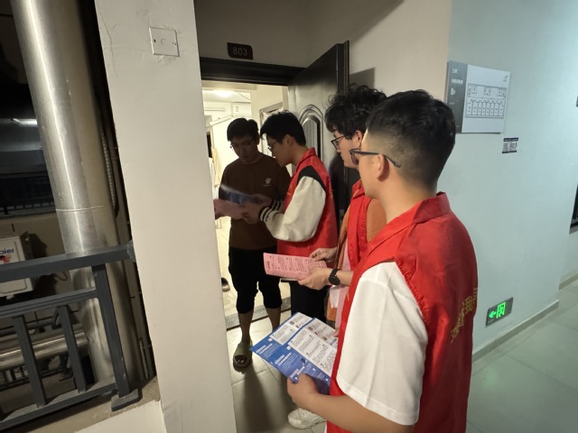 随后,志愿者们来到滨湖前城附近的小区,针对小区住户开展反诈骗宣传活动。他们礼貌敲门上访,向小区居民发放精心制作的反诈骗宣传手册并讲解常见的诈骗手段,如网络刷单诈骗、冒充公检法诈骗、养老诈骗等典型案例。志愿者们反复叮嘱不要轻信陌生人的电话和信息,不随意向他人转账汇款。遇到可疑情况,要及时与家人沟通或拨打报警电话。