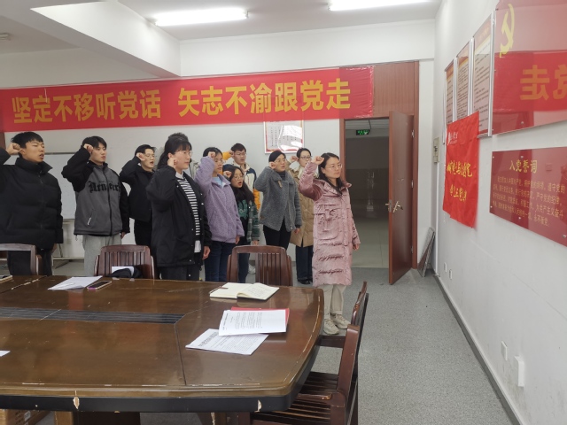 2023年2月21日中午,城市建设与交通学院学生第三党支部在院党员活动室举行新发展的预备党员入党宣誓仪式,支部全体党员共同参与。