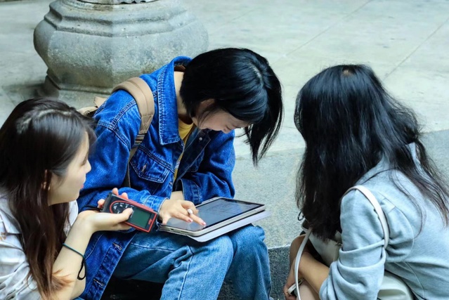 到达各自分配的测绘点后,同学们陆续投入到各自小组古建筑的测绘中。今天各组同学的任务是对所要测绘的古建筑尺寸进行初步测量。下午18时,各组陆续完成了当天的测绘任务。