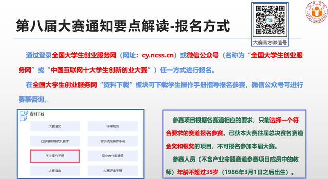 会上,高乔楠老师首先对大赛做了简要的介绍,强调“互联网+”大学生创新创业大赛对提高人才培养质量、提升大学生就业创业水平有着重要意义,中央高度重视。同时鼓励同学们要“敢想会创”,做好准备,积极投身到比赛中去。随后秦蕊老师带领大家学习大赛的赛事规则和要求。她详细分析了2023年“互联网+”大赛的新变化,帮助同学们充分了解本届大赛的特点,动员大家积极参与,踊跃报名。