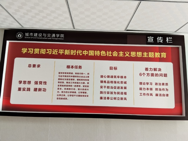为了加强宣传主题教育,城建学院党委及时更新宣传栏,各党支部在本周也积极开展了学习贯彻习近平新时代中国特色社会主义思想主题教育。(城市建设与交通学院 撰稿人:王艳丽 审稿人:张永军)