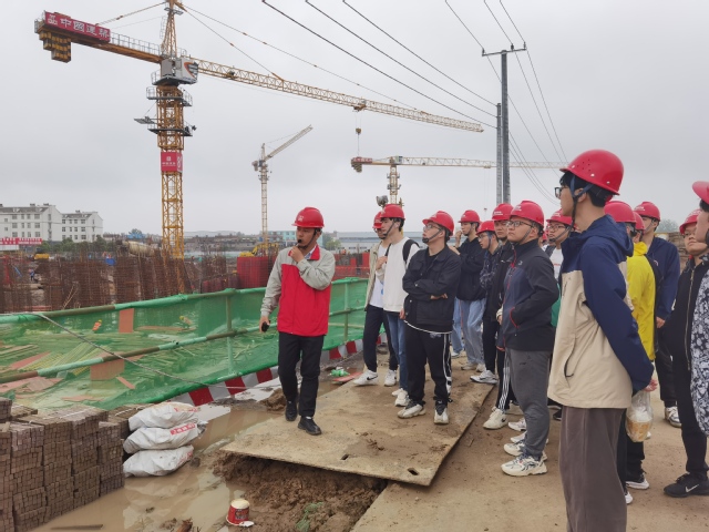 生产实习是土木工程专业集中实践教学中的重要环节,是提升学生专业技能和培养综合素质的必要教学过程。2023年5月5日上午,20级土木工程专业共81名同学在指导老师带领下赴中建国际合庐产业新城项目开展生产实习现场学习教学活动。