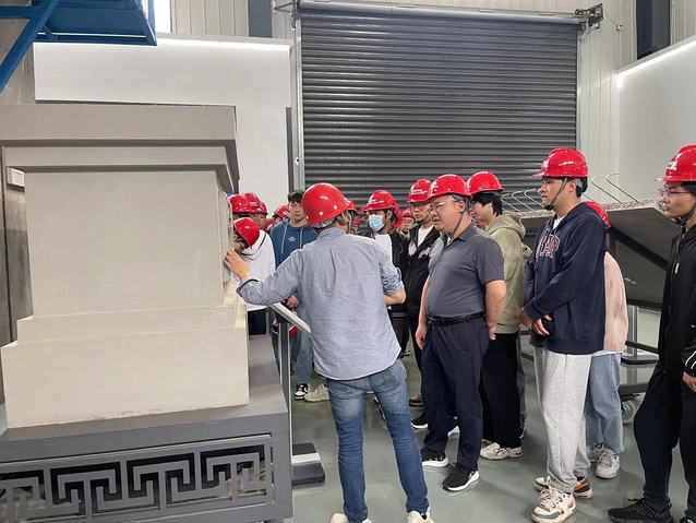 公司技术人员带领同学们观看了装配式结构构件在工厂预制的各环节,重点介绍了预制构件生产原理、装配式建筑施工原理、智能建造信息系统。同学们对不同装配式结构构件的制备过程有了清晰的认识,并与技术人员进行了深入交流,收获颇丰。
