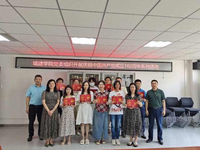 为庆祝中国共产党成立102周年,深入推进学习贯彻习近平新时代中国特色社会主义思想主题教育走深走实,激发学院教师干事创业的热情和动力,2023年6月27日下午,城建学院党委组织开展庆祝中国共产党成立102周年系列活动,城建学院全体党员教师参加活动。