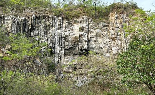 随后,在指导老师的带领下,同学们参观了呈垂直或近似垂直柱状节理的泥晶灰岩。这种独特的地貌现象,是由于地壳运动和地质作用共同影响形成的。通过对这些地质现象的观察和研究,学生们更加直观地了解了地球构造运动的演变过程,以及地表地质作用对地球表面形态的塑造。