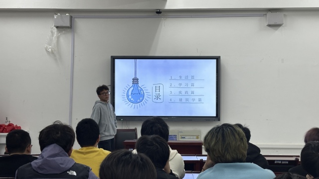 阮志鹏同学从生活、学习、实践三个方面向同学们介绍了大学期间有效的学习方法,同时向大家分享了自己对建筑学专业的认识和理解,鼓励大家要主动掌握建筑学相关知识,充实自身,奋发向上。此外,他还介绍了考研备考经验、个人感受以及如何缓解考研压力,鼓励学弟学妹们要树立考研的信心。最后,他表示希望个人的学习经历和经验,能帮助学弟学妹们解决学习生活中遇到的现实问题,更加顺利地完成学业。