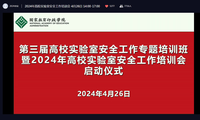 为了全面贯彻习近平总书记“生命第一,安全至上”重要指示精神,加强和落实高校实验室安全管理工作,2024年4月26日下午,城市建设与交通学院组织实验实训中心全体教师和参与实验室管理的专任教师线上参加了由教育部科学技术与信息化司、高等教育司组织召开的“第三届高校实验室安全工作专题培训班暨2024年高校实验室安全工作培训会启动会”的线上培训会。教育部科学技术与信息化司、清华大学、北京理工大学等单位的领导和教授依次做了报告。