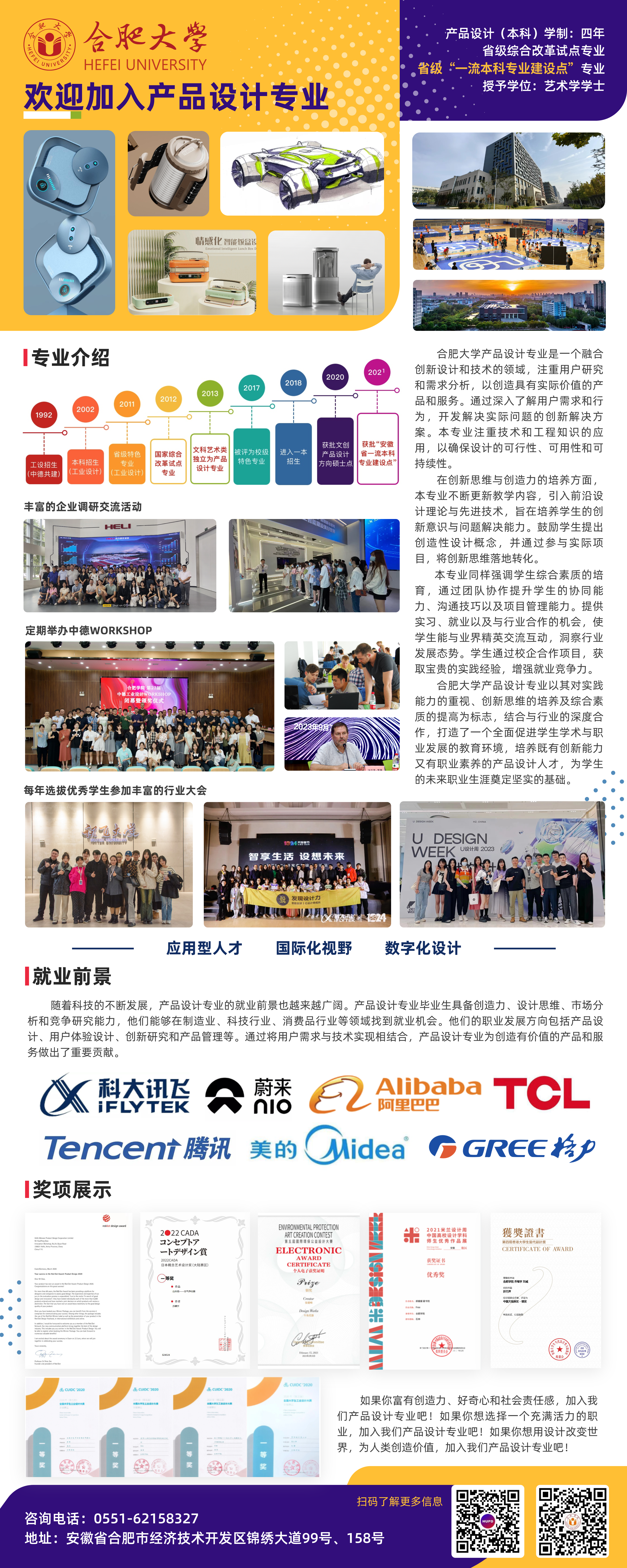 培养目标及特色:本专业培养具有德、智、体、美、劳全面发展,“知识、能力、素质”协调发展,具有扎实的产品设计专业坚实的基础理论知识、及产品造型能力、良好的职业技能和职业素质的应用型人才。本专业借鉴德国应用型人才培养模式,以模块化、重实践、求探索的教学方式展开教学活动,注重学生的创新能力、实践能力及综合能力的培养。本专业与德国多所应用科技大学及台湾设计院校长期交流合作。在日常教学中注重以项目带动教学,通过与行业企业的产学研合作,将相关课程的理论知识付诸于实际项目设计之中,有效的提升学生设计应用能力。通过各类专业设计竞赛等第二课堂活动,提高学生的专业能力和视野。