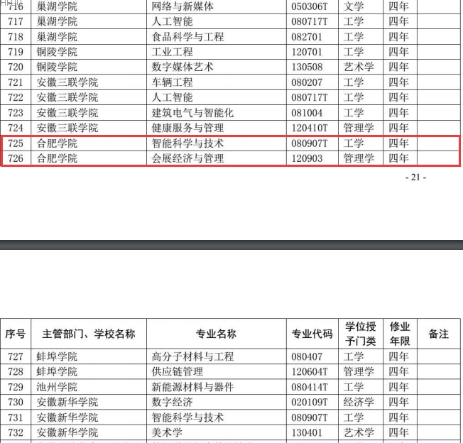 近年来,学校主动对接合肥市经济社会发展和产业结构优化升级需要,积极增设社会急需专业,先后获批 “数据科学与大数据技术”、“智能制造工程”、  “供应链管理”等战略性新兴产业和现代服务业相关专业。学校不断深化专业建设内涵建设,5个专业获批国家级一流本科专业建设点,11个专业获批省级一流本科专业建设点,以新工科建设为引领,经管文交叉融合的应用型本科人才培养模式日益凸显,人才培养质量持续提升。