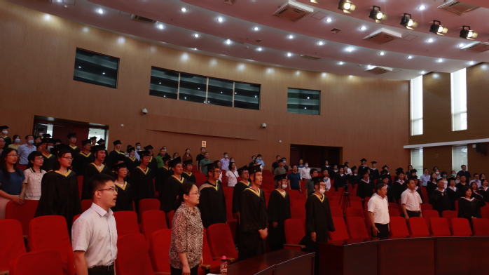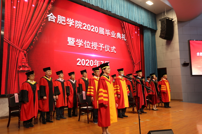校学位评定委员会全体成员入场后,2020届本科生毕业典礼正式开始,典礼在庄严的国歌声中拉开了帷幕。