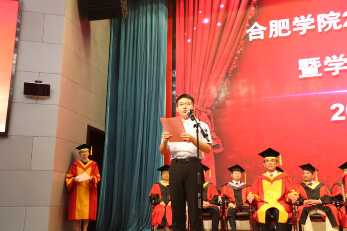 毕业生代表、“十大榜样学子”李虎汉同学代表2020届毕业生回顾了大学四年的学习生活,表达了对母校和老师们的感激之情。