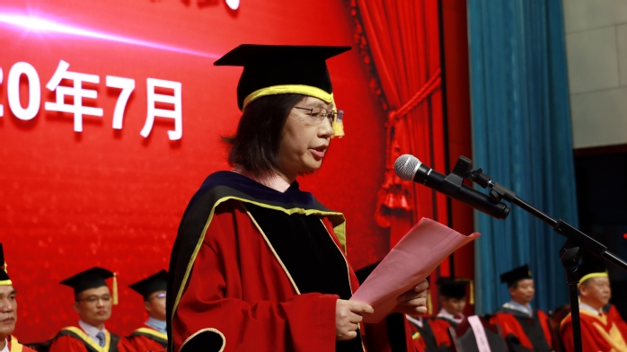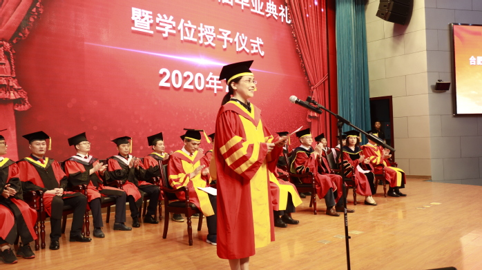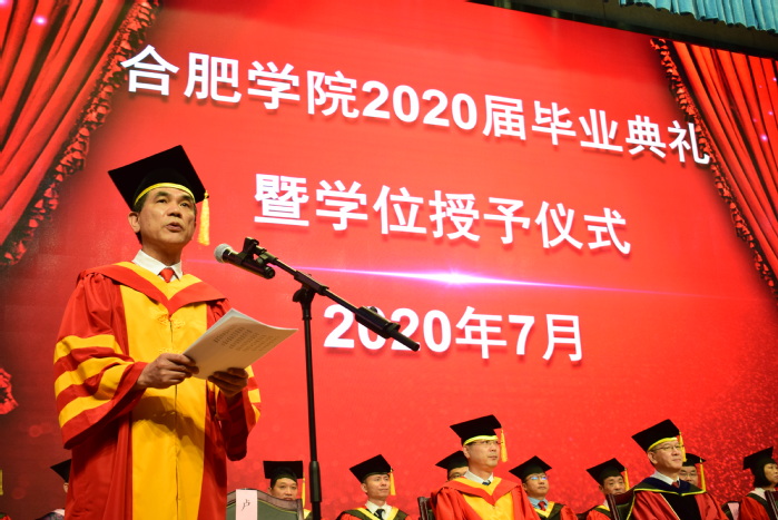 盛夏花开,骊歌浅唱。7月9日下午,我校2020届本科生毕业典礼在图书馆A馆报告厅举行,校易班平台线上同步直播。校领导、校学位评定委员会全体成员,2020届毕业生代表,院职能部门负责人,各学院班子成员、教师代表共同参加典礼,典礼由副校长、校学位评定委员会副主席陈秀教授主持。