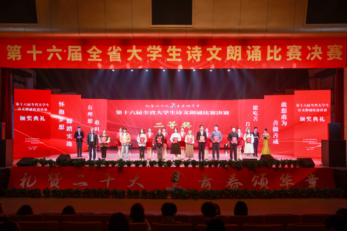 本次大赛由安徽省教育厅、安徽省语言文字工作委员会、安徽省朗诵艺术学会、安徽省普通话培训测试中心等联合主办,大赛主题为“礼赞二十大,青春颂华章”。省内43所高校选送了130余项作品参赛,经专家遴选,共有49项作品进入决赛。经过激烈角逐,我校作品在34项非专业组的作品中名列第8名,充分展现了我校学生较高的艺术素养、文学底蕴和良好的精神风貌。